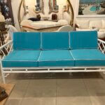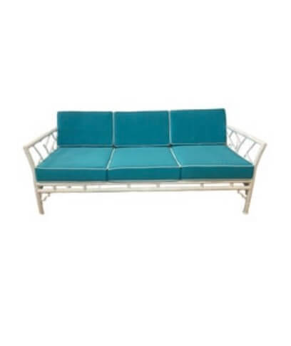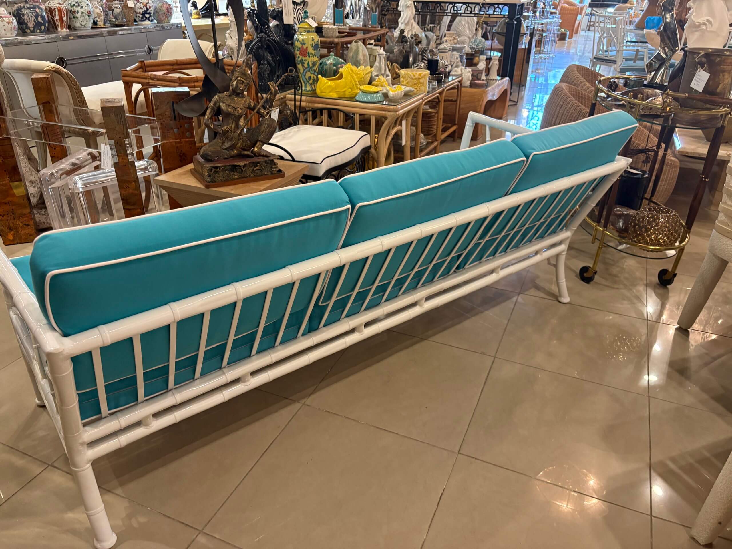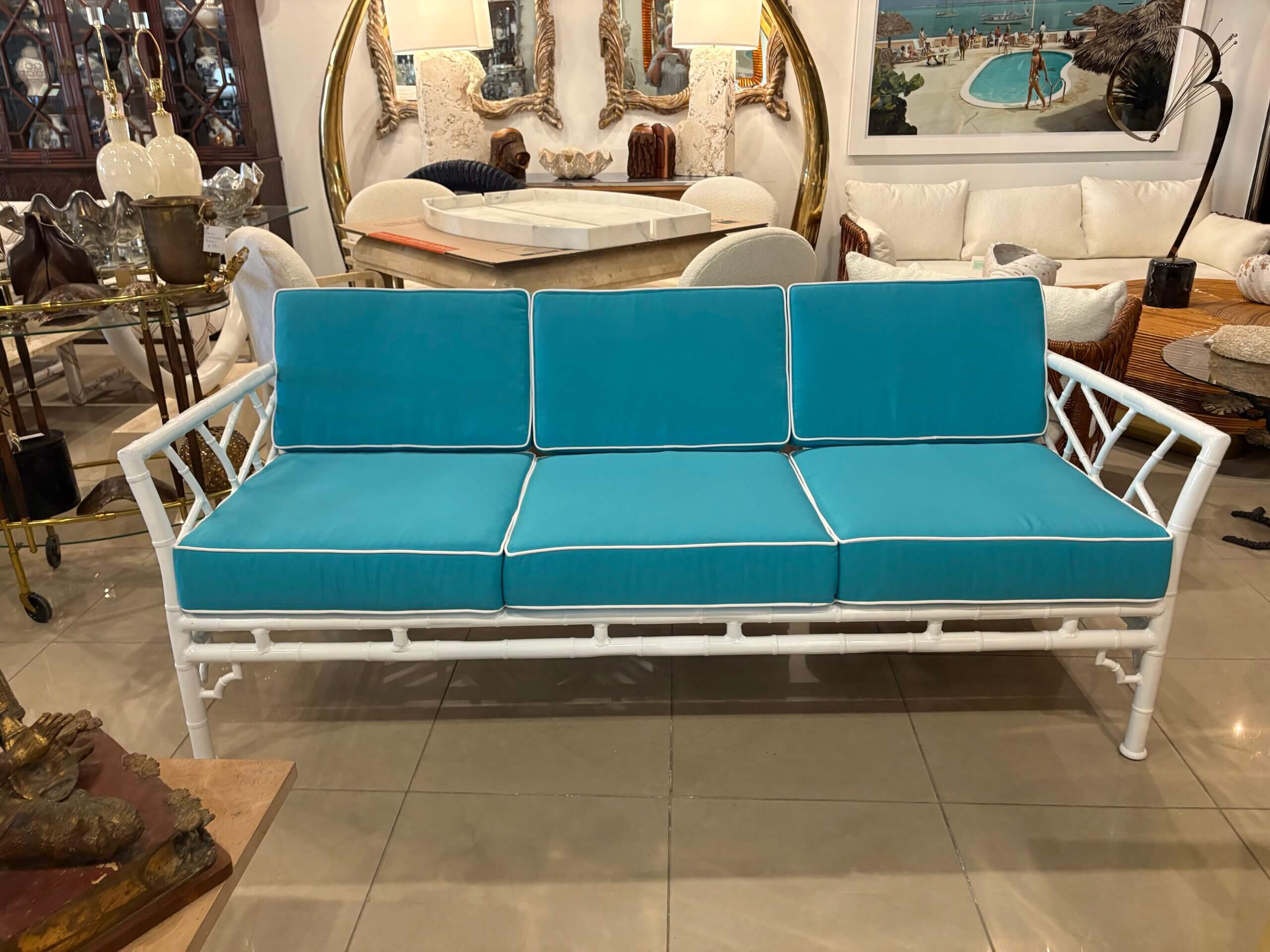 Vintage Patio Outdoor Sofa Faux Bamboo Metal Newly Powdercoated & Sunbrella Cushions
