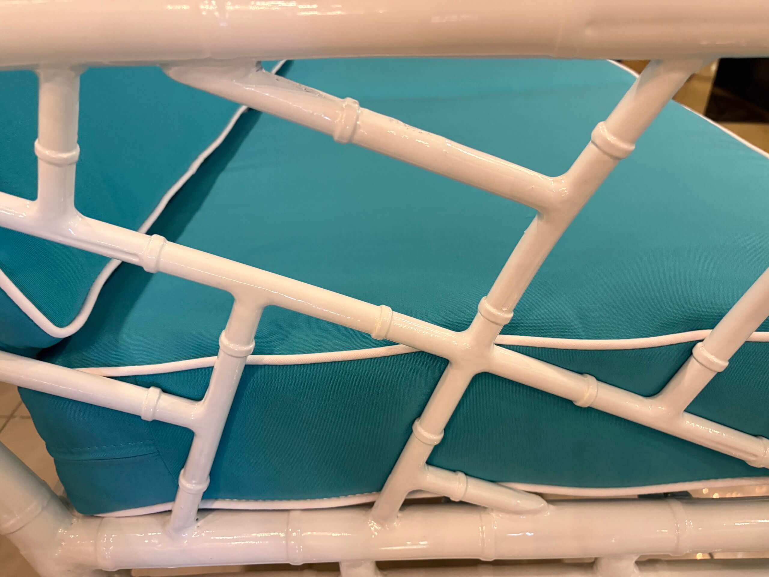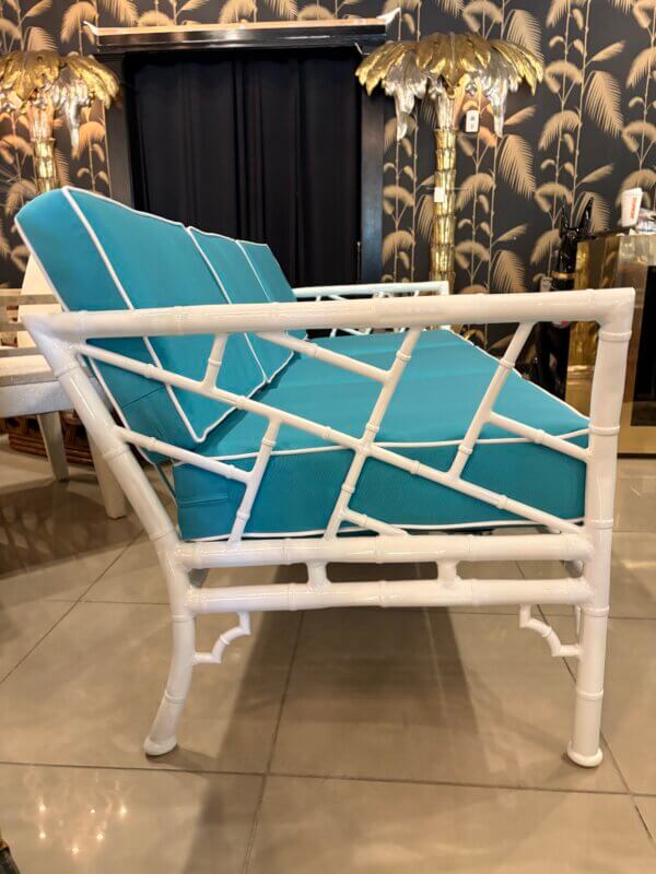 Tags: brown jordan, Chairs, chinese chippendale, faux bamboo, fretwork, Metal, newly powder coated white, outdoor, patio, pool, porch, Sofa