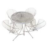 SOLD 5 Pc Salterini Orange Slice Clam Shell Patio Dining Table & Chairs Powder-Coated White