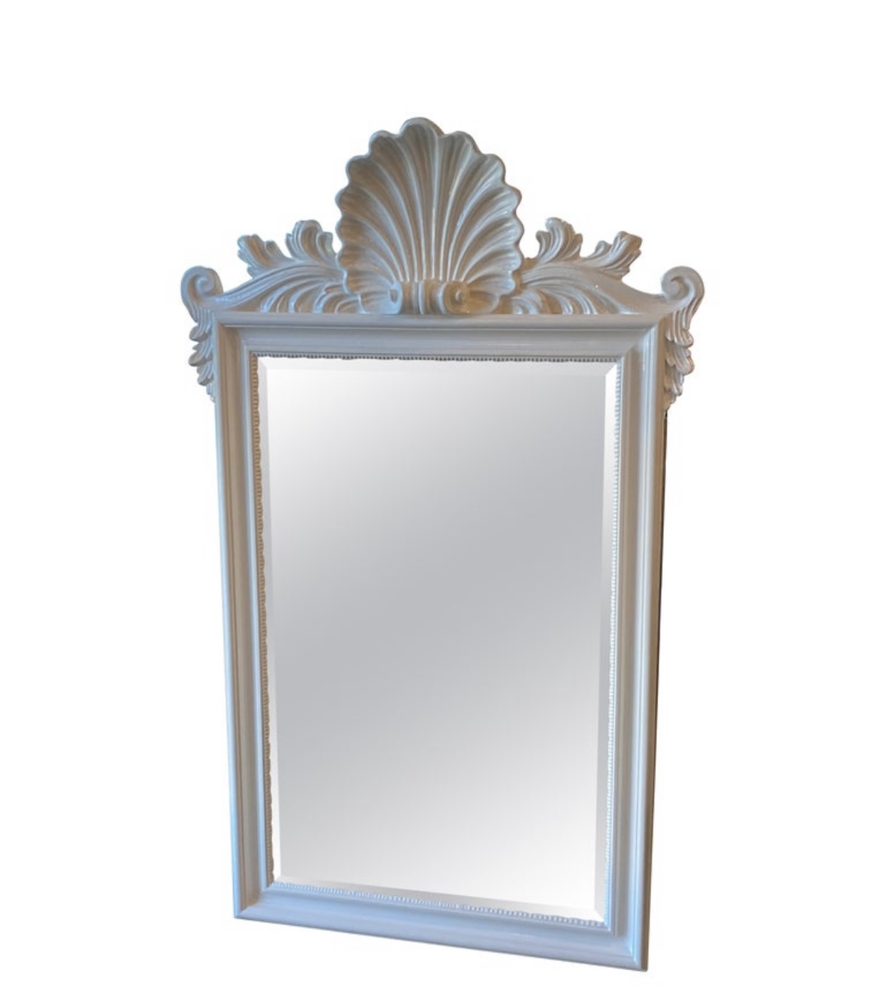 SOLD Vintage Palm Beach Shell Seashell White Lacquered Wall Mirror