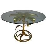 Gold Gilt Arthur Court “Lily” Dining or Entry Way Table with round glass top. In nice as found vintage condition.