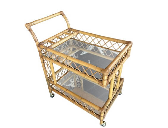 Tags: bamboo, bar cart, brass castors, franco albini, Italian, mirror, rattan, serving cart, trolley, two tier, Vintage