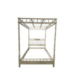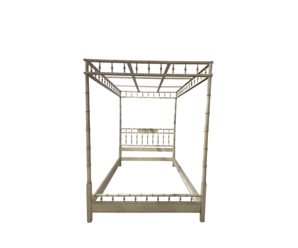 Vintage faux bamboo queen size canopy bed. Includes headboard, footboard, side rails and top. Incredible bed! You can add fabric to the top as the slats are in place. The finish is original therefore I recommend refinishing/lacquer. Dimensions assembled are 84 H x 63 W x 86 D.