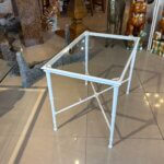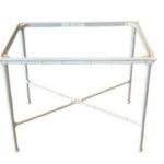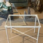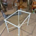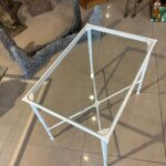 Vintage Brown Jordan Calcutta side end patio outdoor table. This has been newly powder-coated in a glass white. New glass top cut to fit inset. Dimensions: 25.25 W x 17.25 D x 20 H.