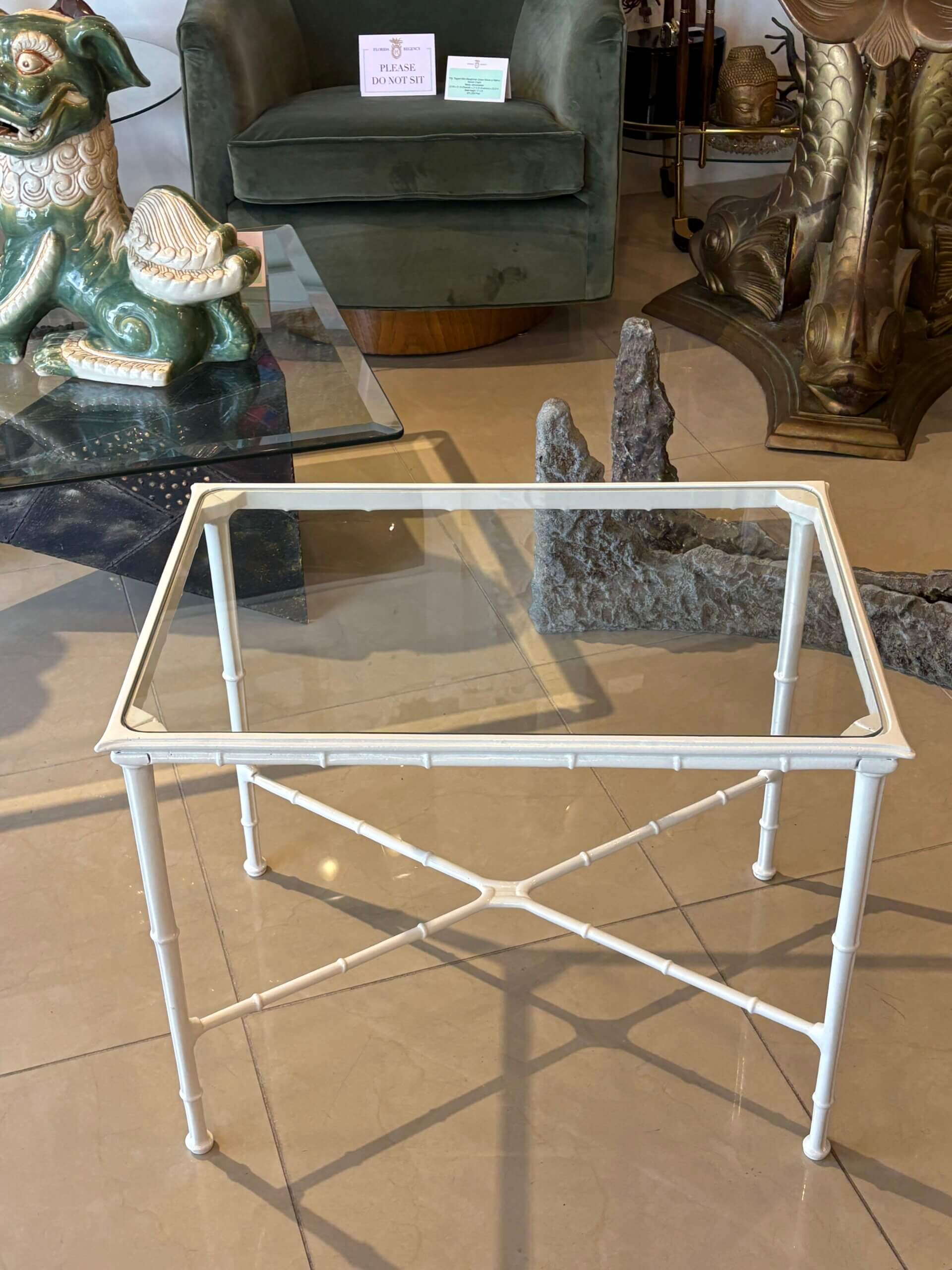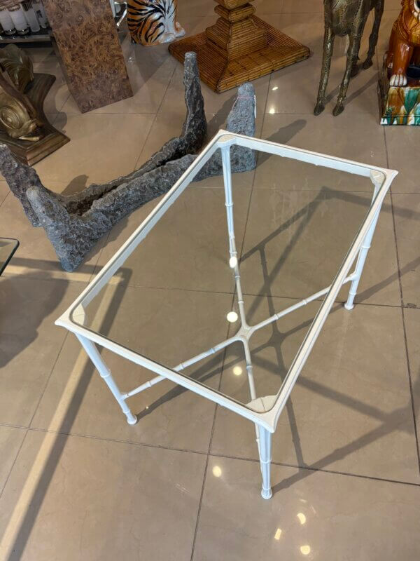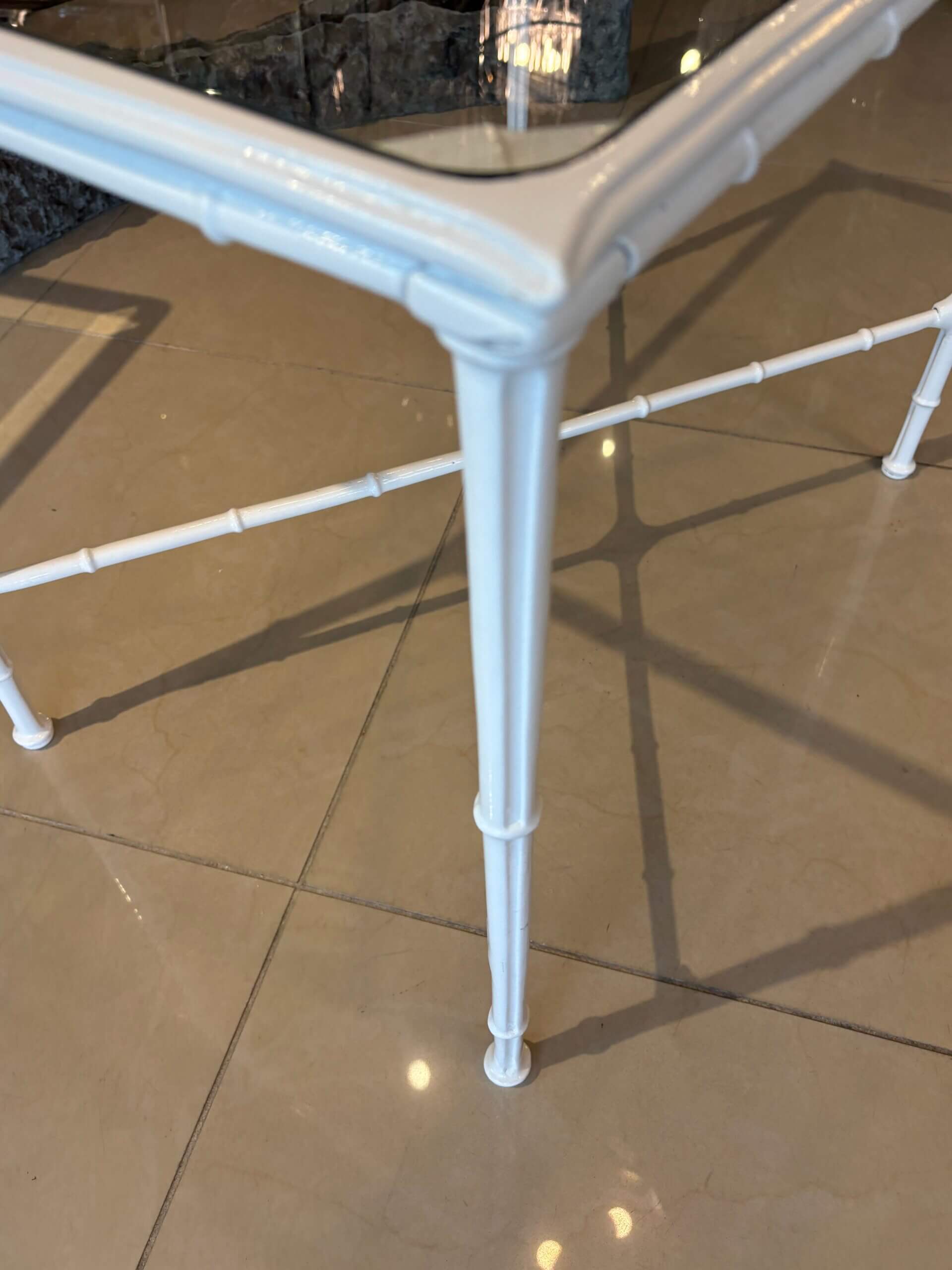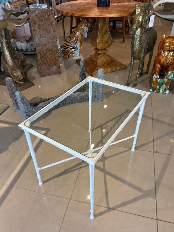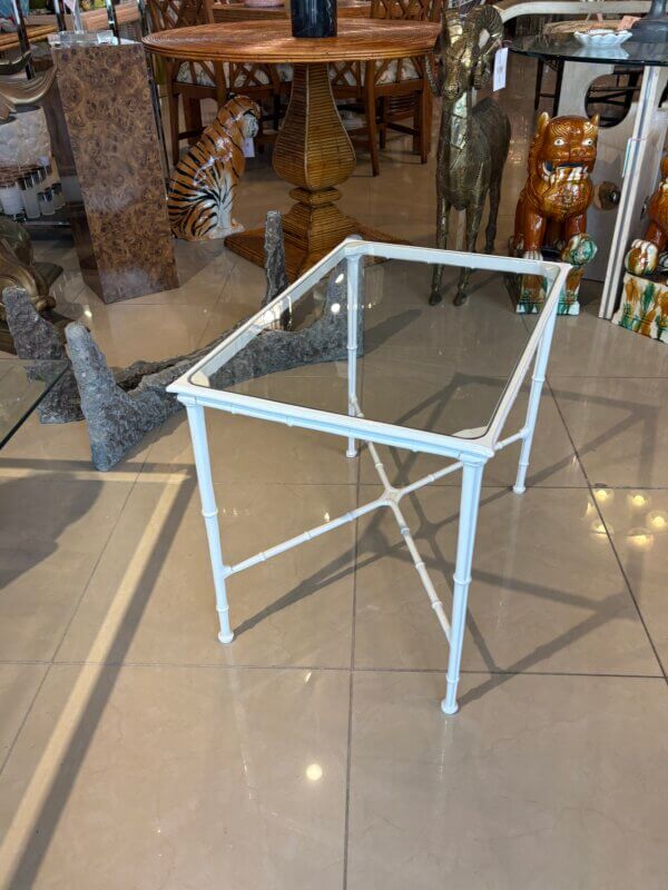 SOLD Vintage Brown Jordan Calcutta Faux Bamboo Side End Table New Glass & Powdercoat
