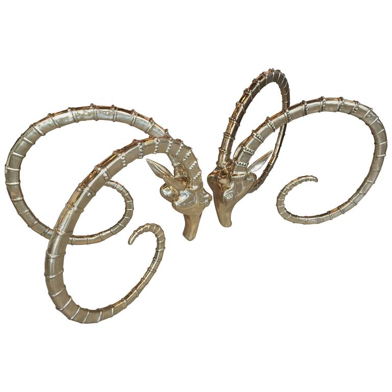 SOLD Brass Rams Head Pair of Bases Dining Table or Desk Ibex Gazelle