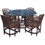 SOLD Brighton Style Rattan Dining Set Game Table Chinese Chippendale Four Chairs