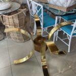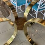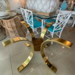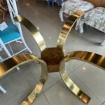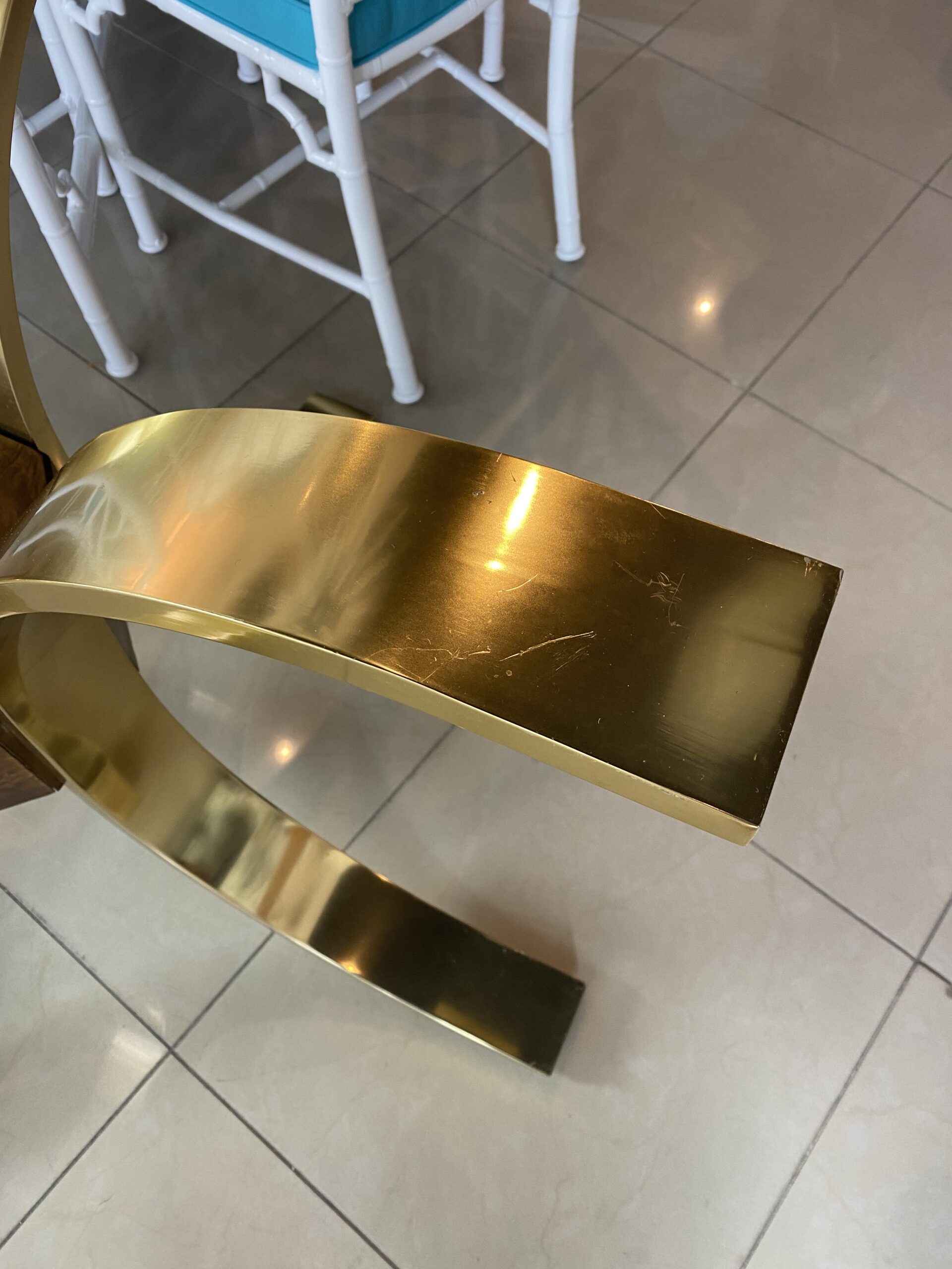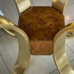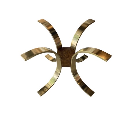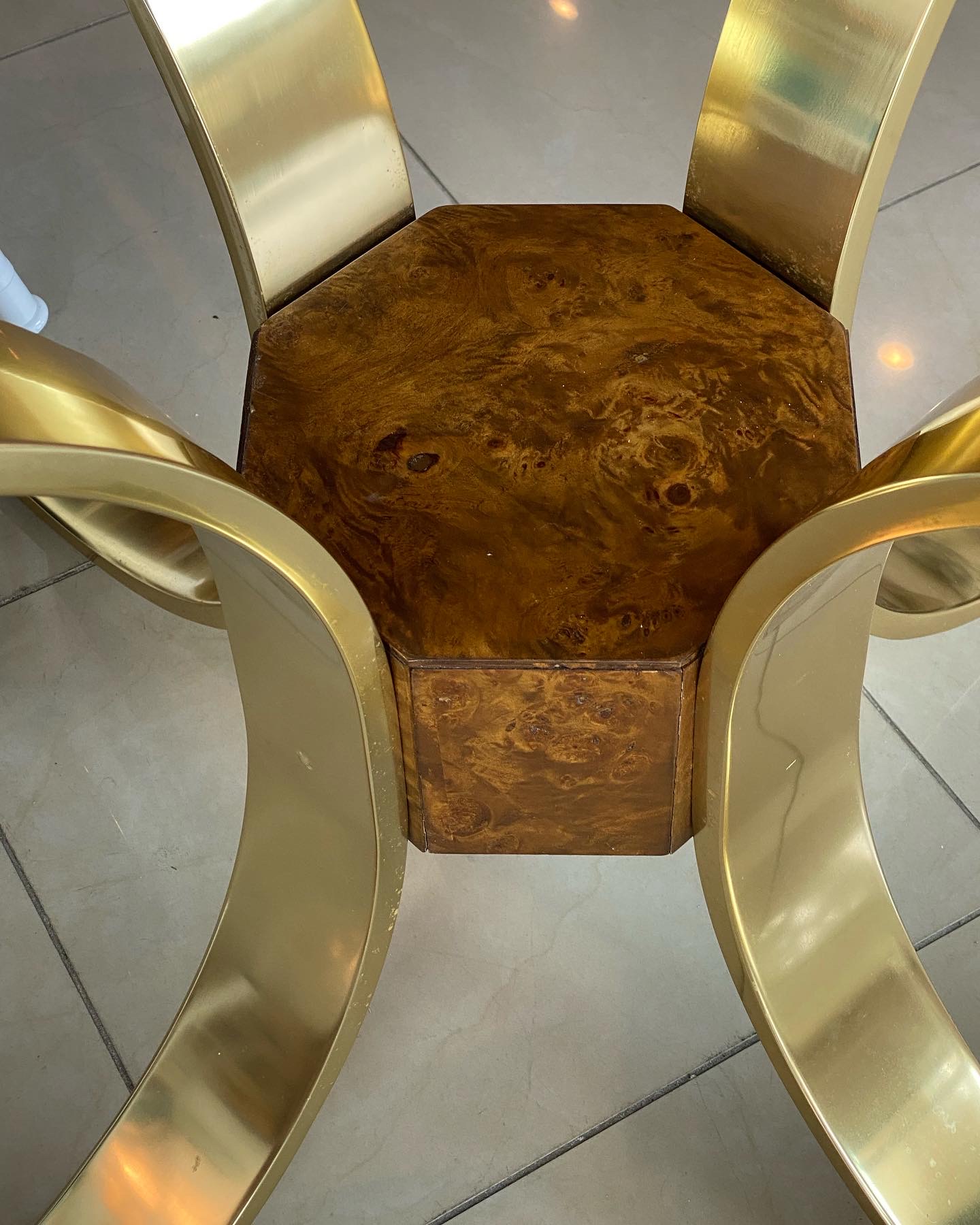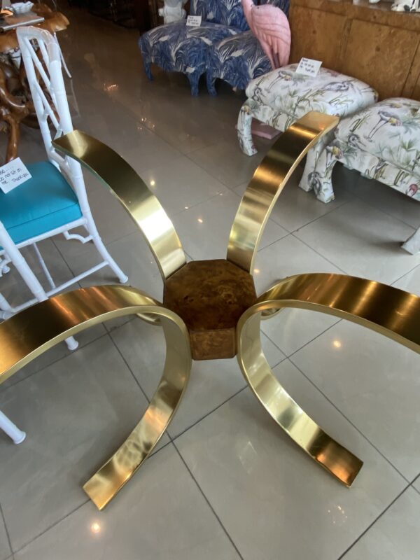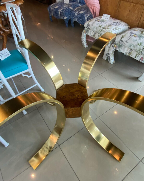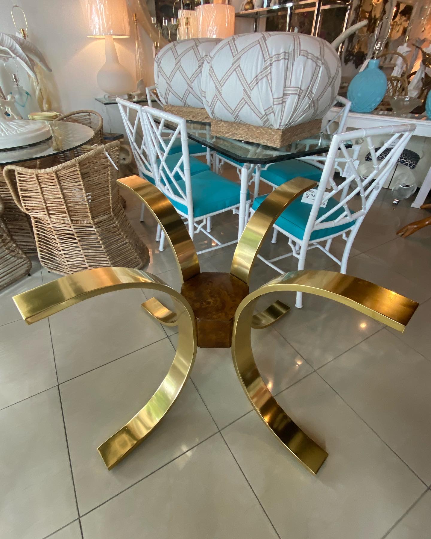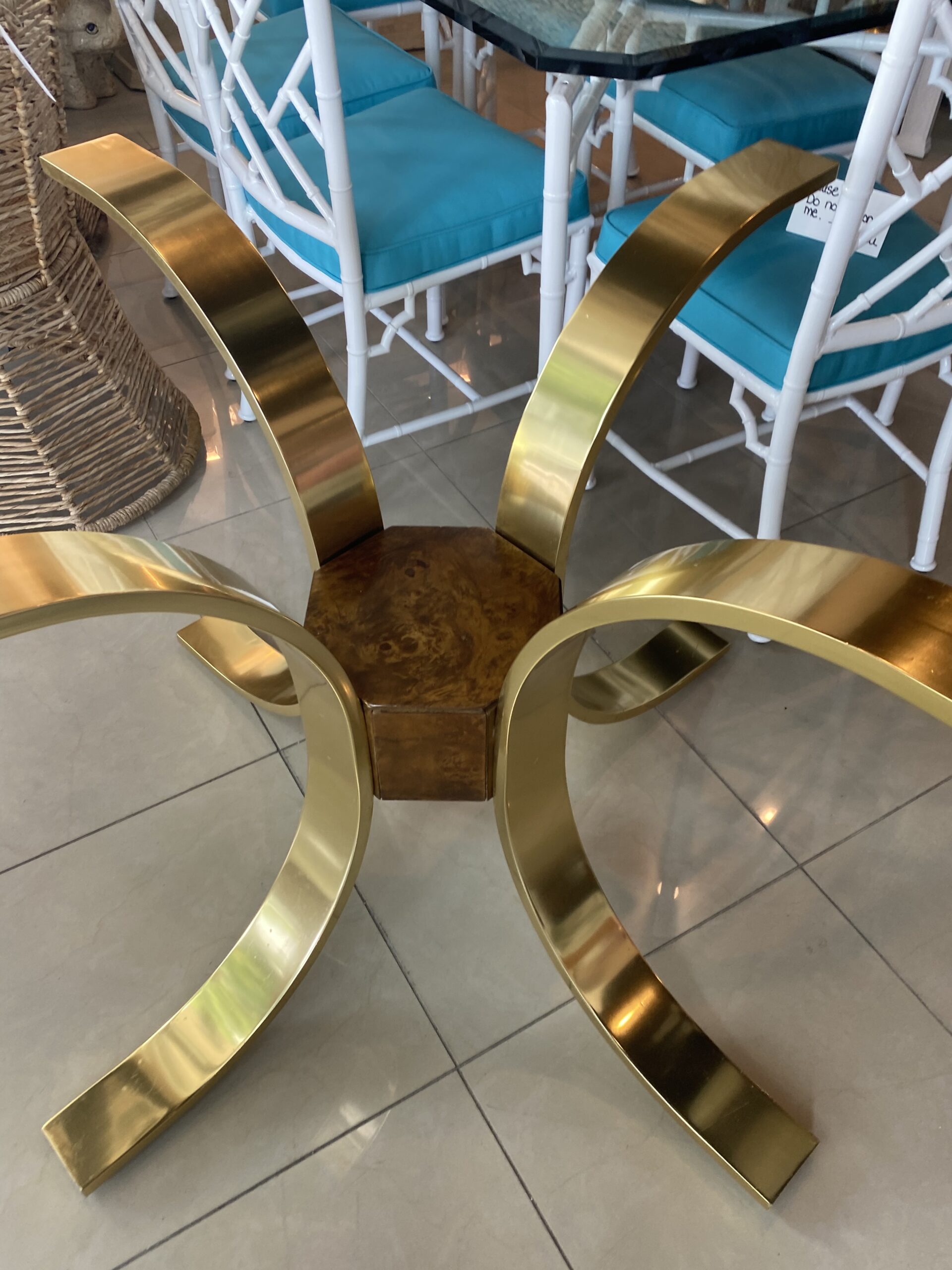 SOLD Vintage Mastercraft Brass Gold & Burl Wood Dining Table Center Entry Base