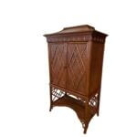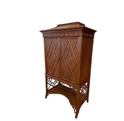 SOLD Vintage Rattan Woven Faux Bamboo Pagoda Bar Cabinet Armoire Chinese Chippendale
