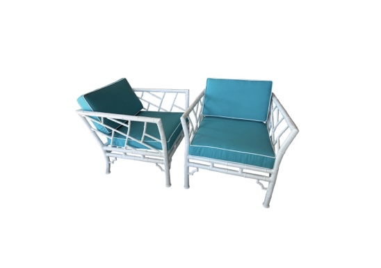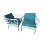 SOLD Chinese Chippendale White Metal Faux Bamboo Lounge Arm Chairs Patio Restored