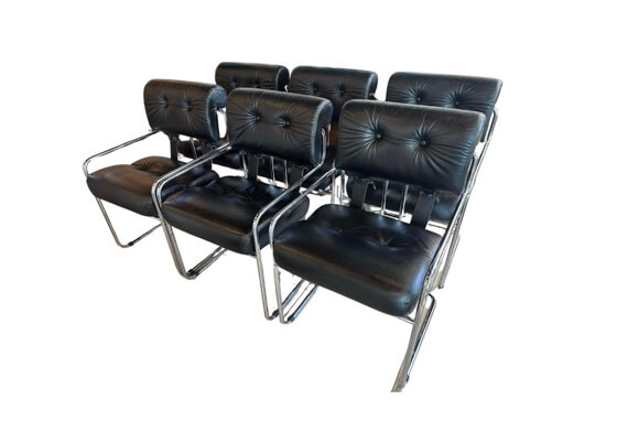 SOLD Set 6 1970s Guido Faleschini Tucroma Pace i4 Mariana Black Leather Dining Chairs