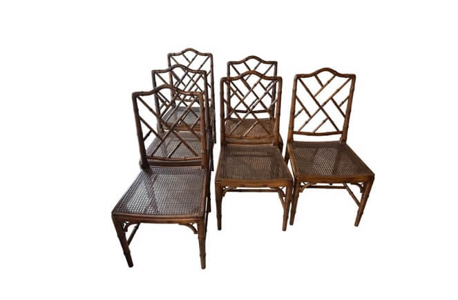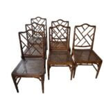 SOLD Vintage Set of 6 Faux Bamboo Chinese Chippendale Wood Side Dining Chairs