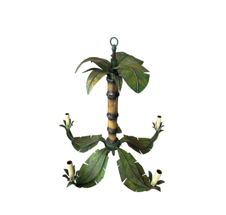 SOLD Vintage Palm Beach Tropical Metal Tole Palm Tree Leaf leaves 5 Light Chandelier