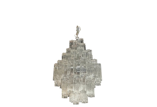 SOLD Vintage 1970s Large Murano Tronchi Venini Glass Chrome 5 Tier Chandelier