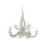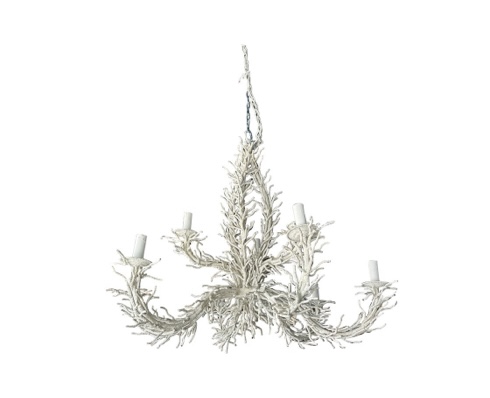 Vintage faux coral iron metal chandelier. 9 lights. Tested, working order. Original creamy white finish. Comes with original, matching chain. Ceiling cap not included. Dimensions: 39 H x 48 D.
