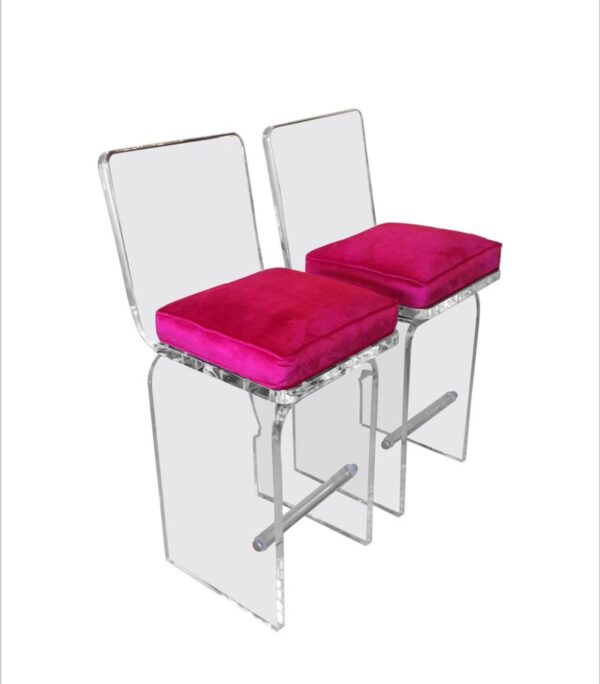 SOLD Charles Hollis Jones Lucite Swivel Barstools Counter Stools Pink Waterfall