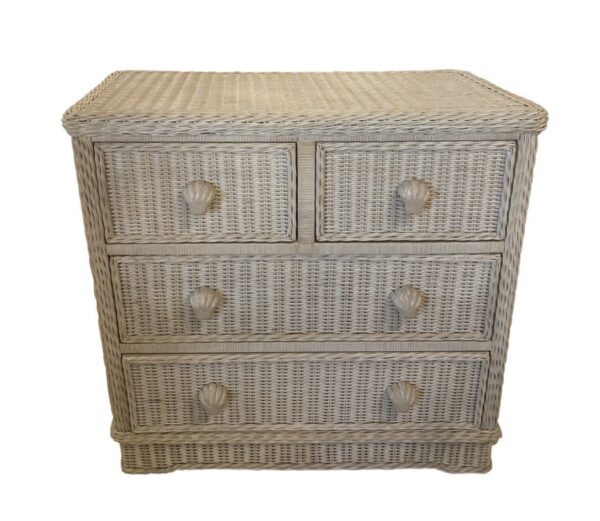 SOLD Vintage Palm Beach Wicker Chest of 4 Drawers Dresser Shell Pulls