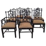 SOLD Chinese Chippendale Dining Chairs Vintage Set of Eight Fretwork Made in Spain