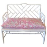 SOLD Chinese Chippendale Faux Bamboo Arm Bench Lacquered Chinoiserie Pink Cushion