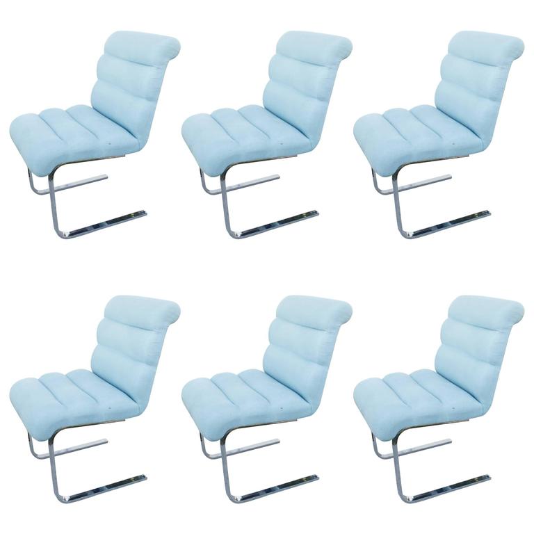 SOLD Chrome Set of Six Dining Chairs Side Vintage Cantilever by Preview Furniture