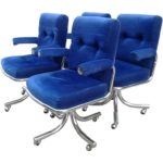 SOLD Chrome Swivel Arm Chairs Vintage Three Available Blue Desk Dining Hollywood Regency