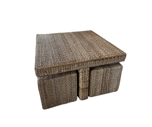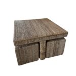 SOLD Vintage Palm Beach Seagrass Coffee Cocktail Table with 4 Benches Stools