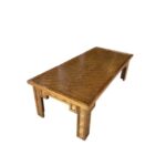 Beautiful vintage woven wicker cane and wood coffee cocktail table with lovely fret designs on the apron. Dimensions: 16 H x 24 D x 52 L.