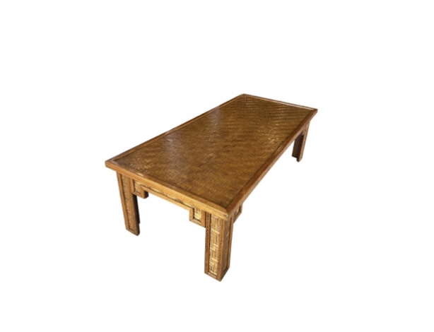 SOLD Vintage Woven Cane Bamboo Wicker & Wood Coffee Cocktail Table