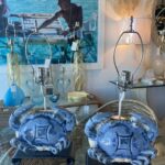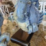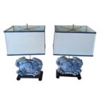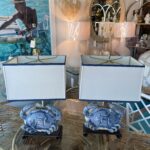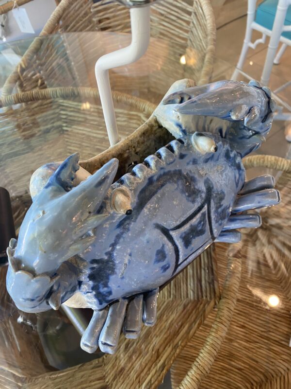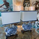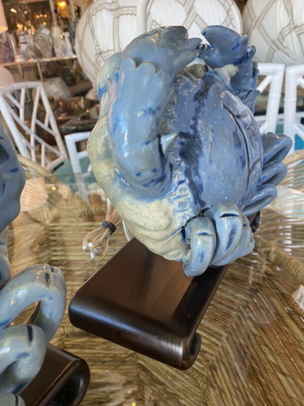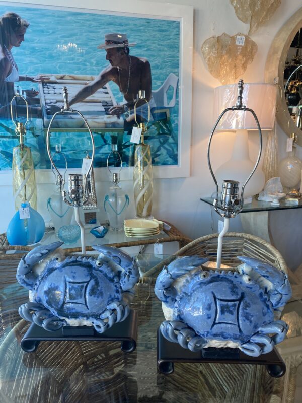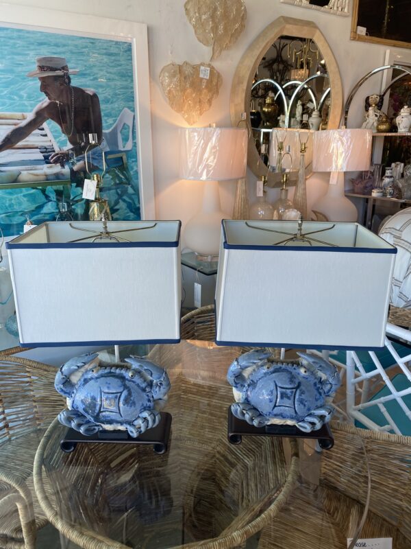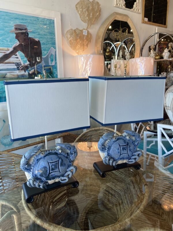 SOLD Vintage Pair of Terracotta Blue Crab Table Lamps Palm Beach Newly Wired