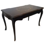 SOLD Desk Ormolu Black and Gold Vintage French Writing Brass Curves Wood Ornate