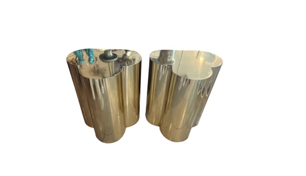 SOLD Vintage Pair Brass Trefoil Dining Table or Console Bases Style of Curtis Jere