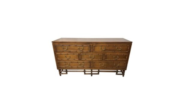 SOLD Vintage Ficks Reed Rattan Faux Bamboo Wood 7 Drawer Dresser Credenza Brass Pulls