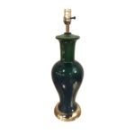 Vintage blue and green drip glaze table lamp with polished brass base, Mid-Century Modern. Tested, working order.