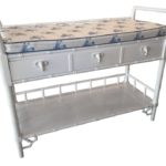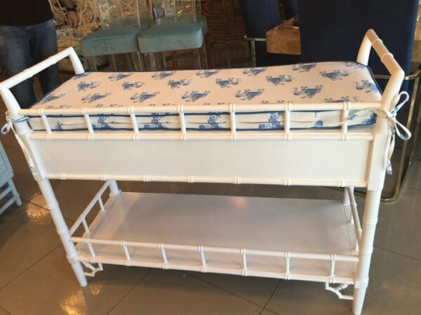 It also ties on the back of the table. Faux bamboo, fretwork, Chinese Chippendale, chinoiserie, Palm Beach details. Perfect in a baby boys nursery.