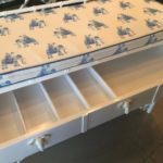If you would like this to be a girls changing table please let me know and I can use the pink elephant fabric instead of blue. Changing table can be lacquered in a custom lacquer color.