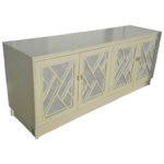 Vintage faux bamboo Chinese Chippendale mirrored buffet, credenza, sideboard, dresser. Drawers inside.