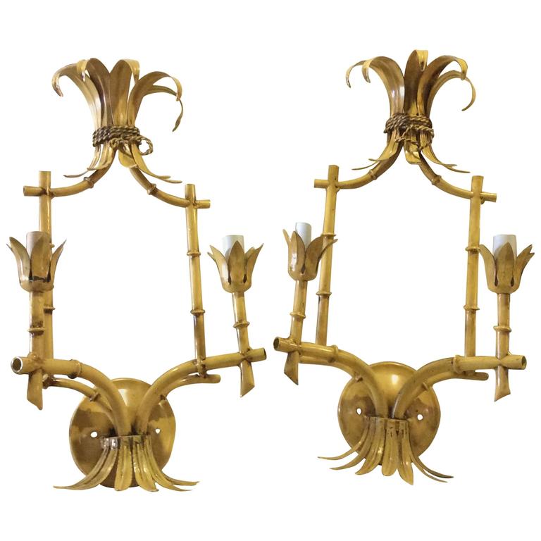 SOLD Faux Bamboo Tole Wall Sconces Vintage Pair