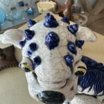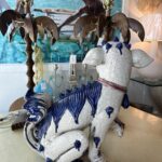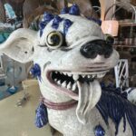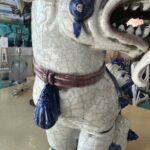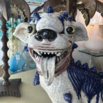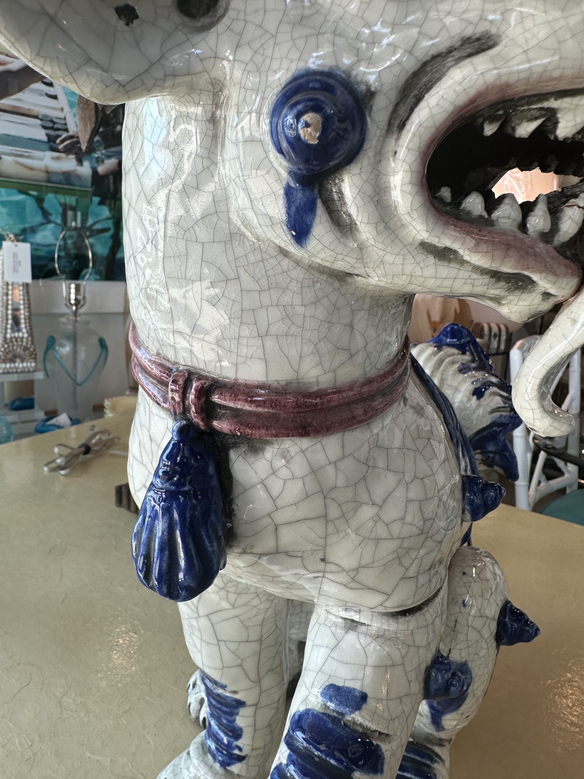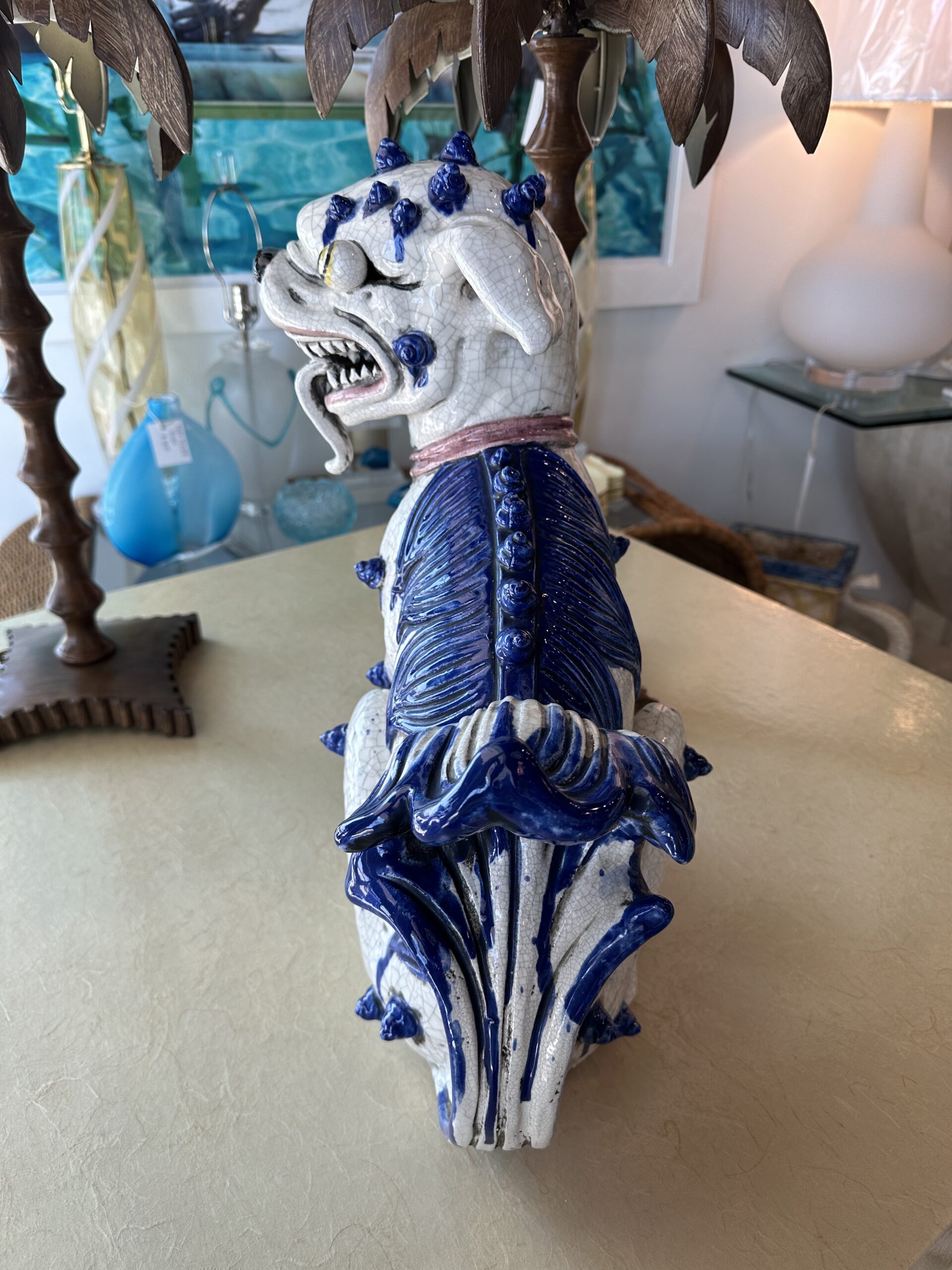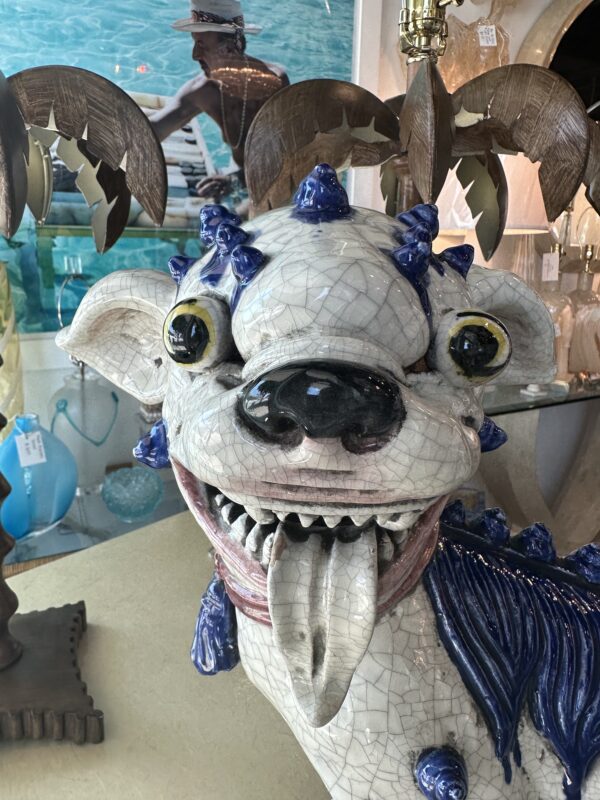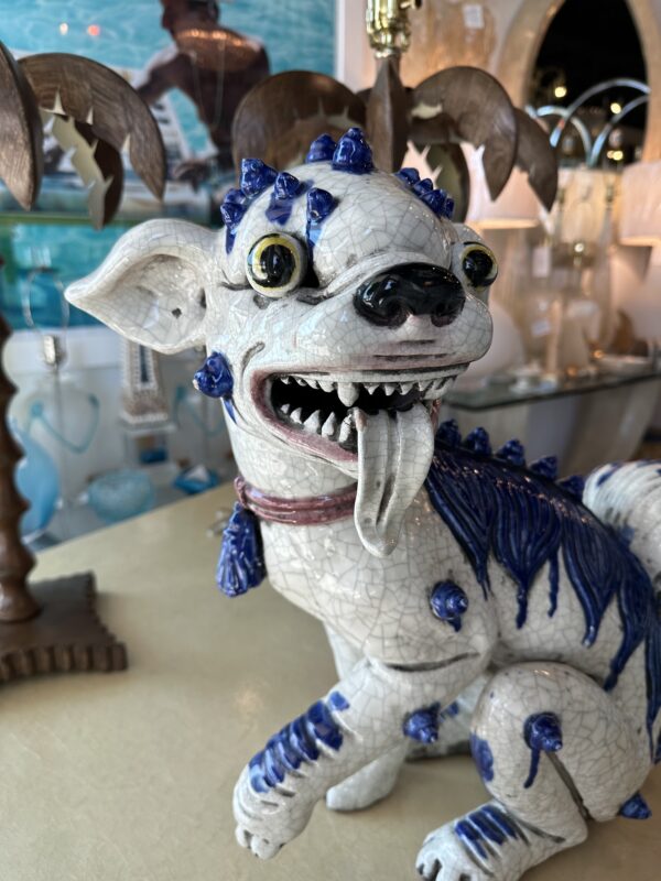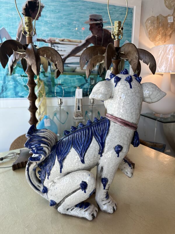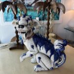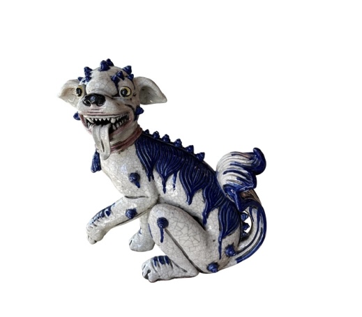 SOLD Vintage Oriental Blue & White Large Foo Dog Terracotta Porcelain