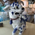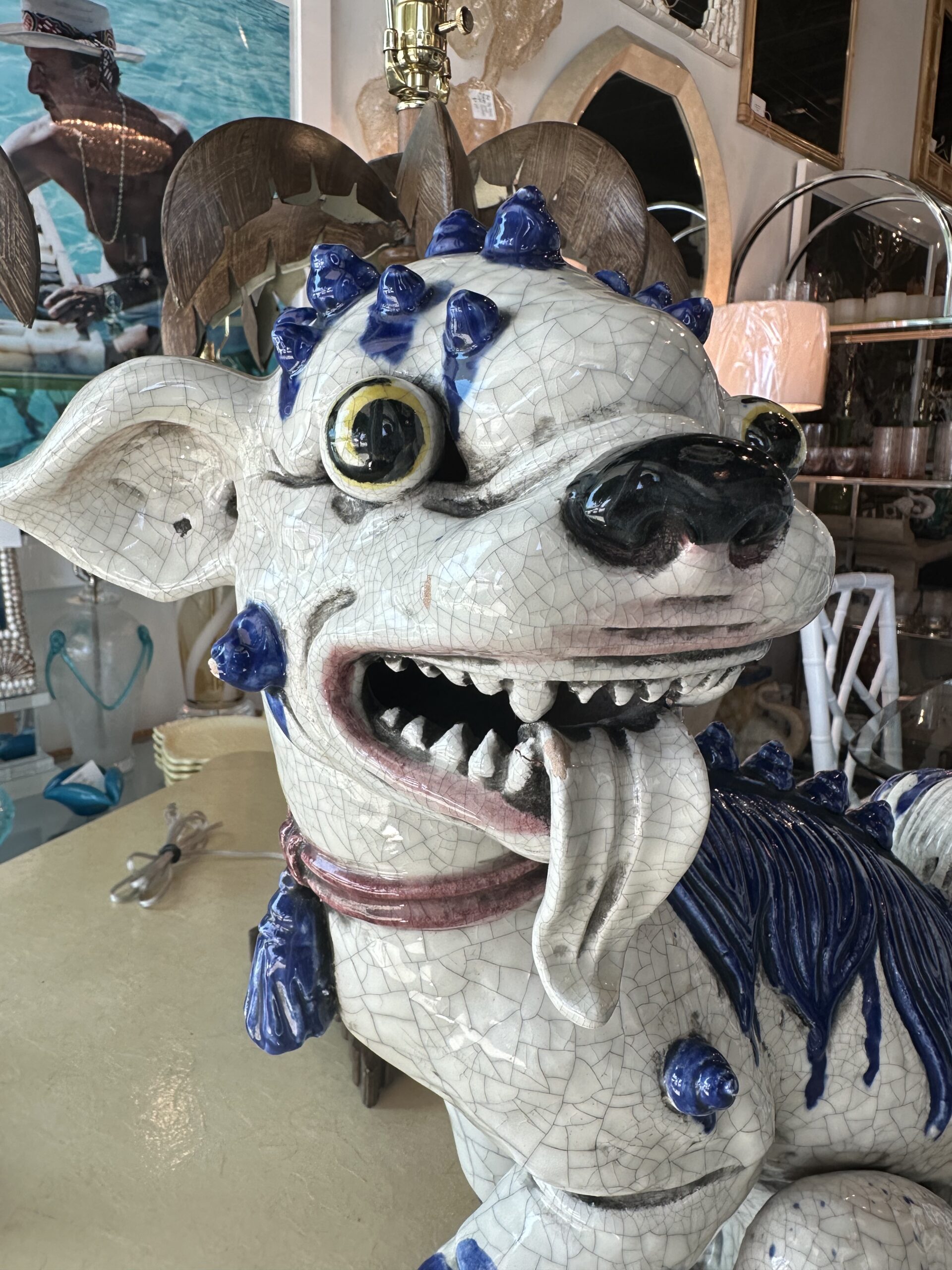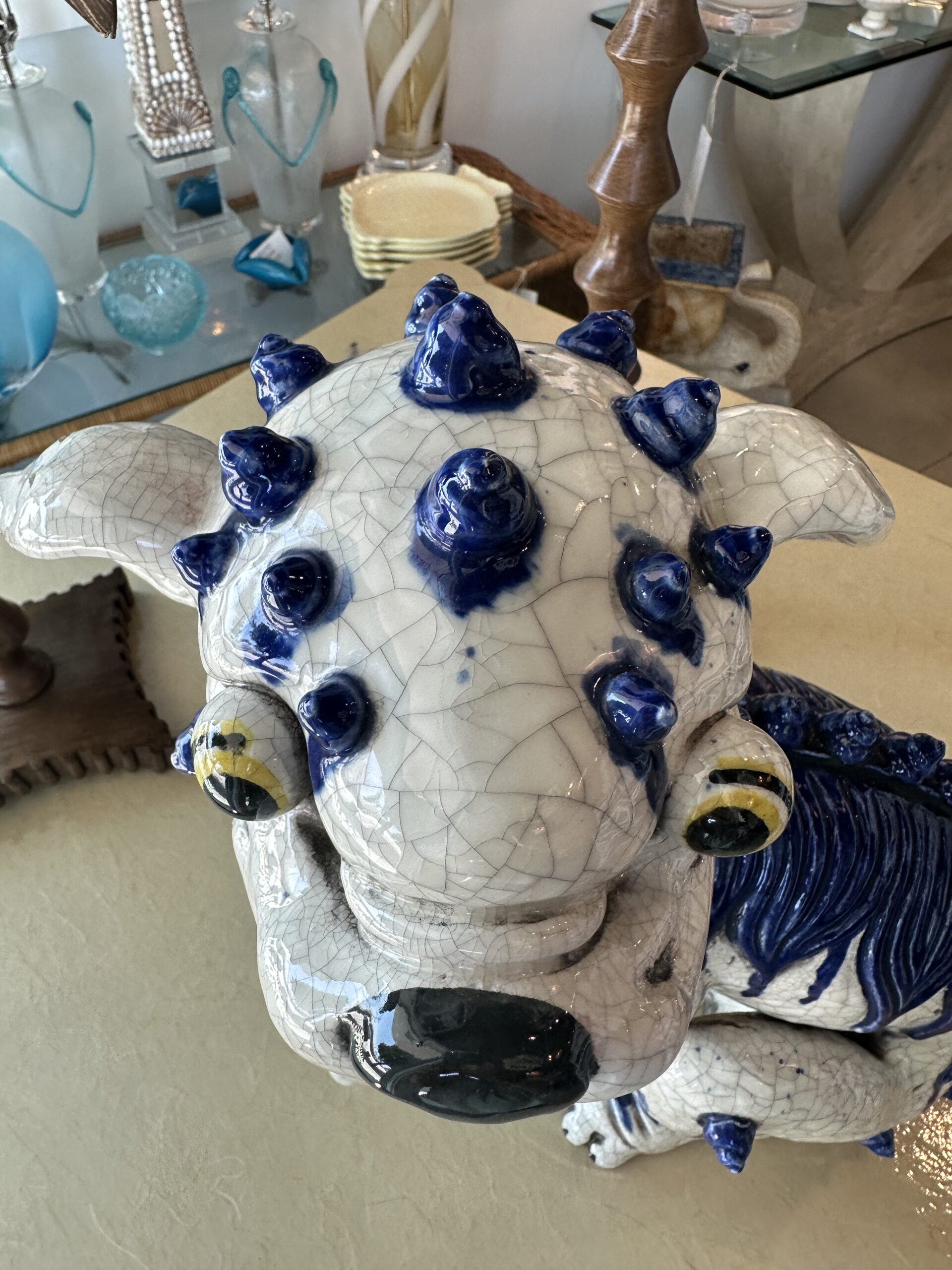 Beautiful vintage blue & white foo dog. No chips or breaks. Incredible details. Dimensions: 18 H x 16 W x 9 D.