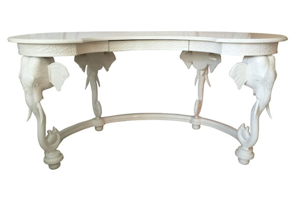 Vintage Gampel & Stoll Kidney Elephant Desk with one drawer. NEWLY lacquered white gloss finish. There may be minor imperfections to the newly lacquered vintage finish.
