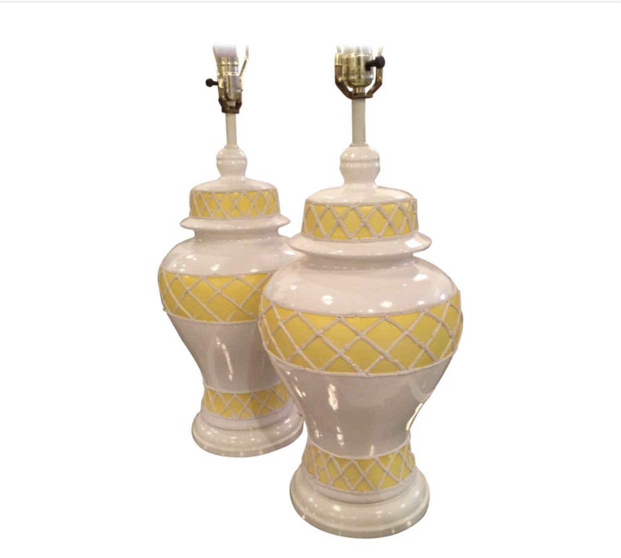 SOLD Ginger Jar Icing Table Lamps Vintage Pair Ceramic Yellow Palm Beach Large