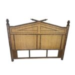 SOLD Vintage Burnt Bamboo & Rattan Grasscloth Headboard Queen Size Bed Chinoiserie