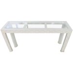 Vintage fret console table with glass top by Henredon Furniture. Original vintage finish.