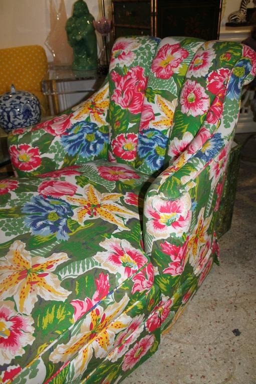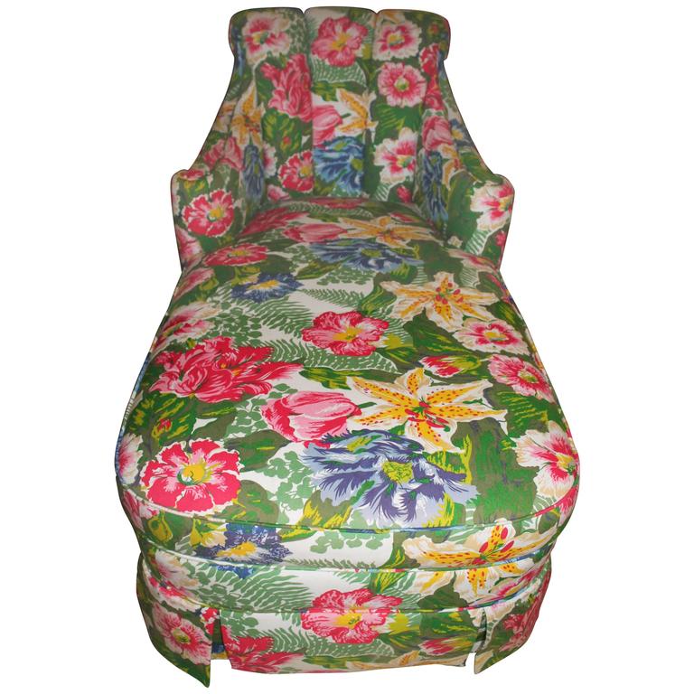 SOLD Kindel by Carlton Varney Dorothy Draper Lounge Chair Chaise Floral Channel Back