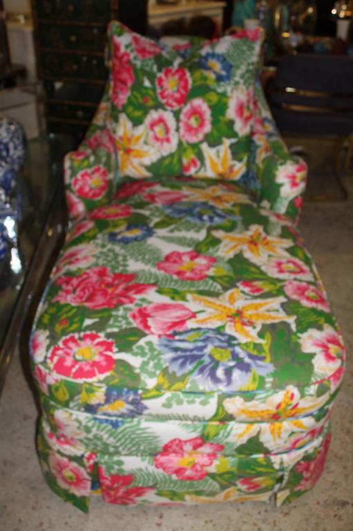Kindel chaise by Carlton Varney for Dorothy Draper. Original floral fabric which is in excellent condition with no defects found. This also comes with a large pillow which is pictured in the last picture.