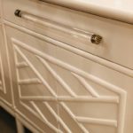 SOLD Lacquered Credenza Buffet Sideboard Rattan Faux Bamboo Lucite and Brass