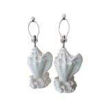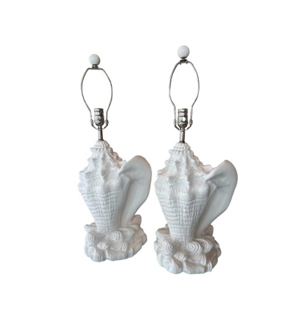 SOLD Vintage Pair Palm Beach Plaster Shell Table Lamps Serge Roche Style Newly Wired