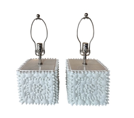 SOLD Vintage Pair of Faux White Shell Seashell Table Lamps Newly Lacquered & Wired