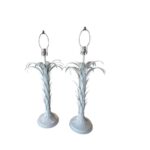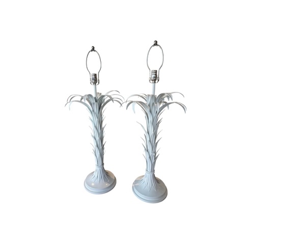 SOLD Vintage Pair Metal Tole Palm Leaf Leaves Frond Table Lamps Style of Serge Roche