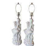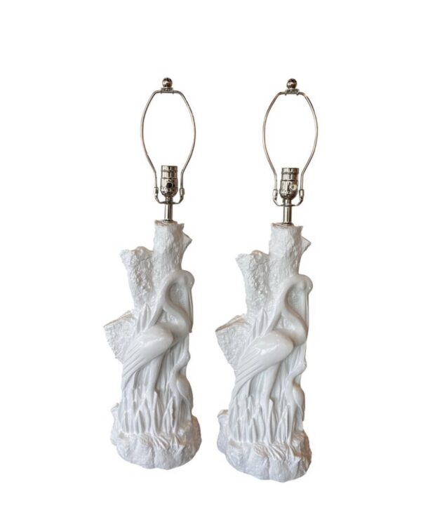 SOLD Vintage Pair of Tropical Plaster Bird White Heron Table Lamps Newly Wired